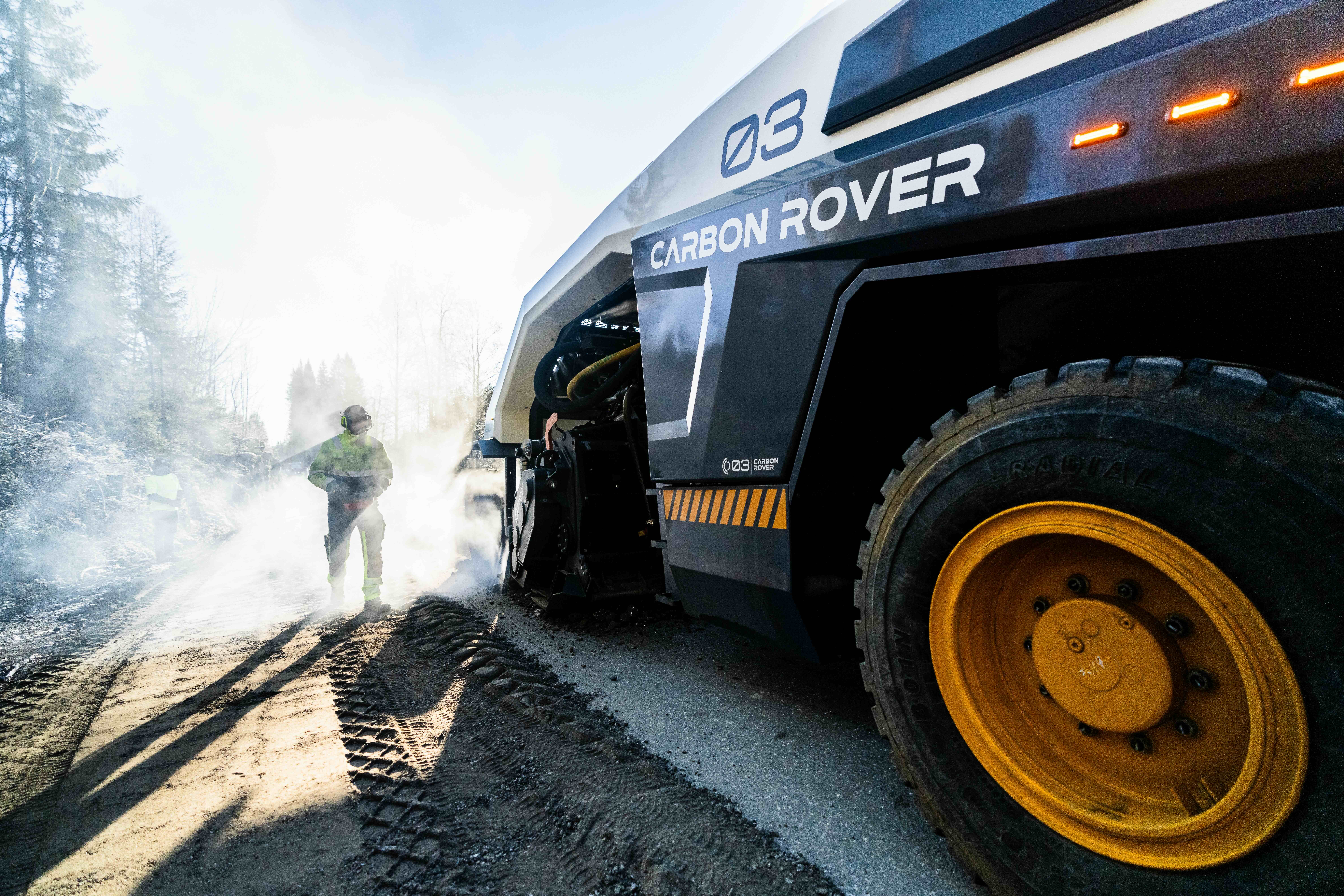 The Rover crushes and recycles damaged roads, strengthening and stabilizing them with biogenic carbon - all in a single, data-driven process with step-change efficiency.